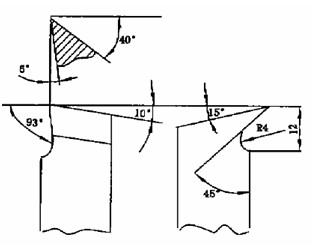 | 1、截止阀 2、截止阀 3、蒸汽源 4、截止阀 5、温度计 6、压力表 7、截止阀 8、风泵 9、气水分离器 图1 硫化装置 | 图2 加工橡胶刀具角度 |